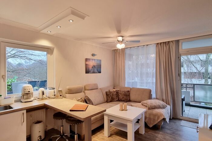 Das Appartement befindet sich in der 2. Etage in einer ruhigen, gepflegten Wohnanlage mit einer großen Sonnenterasse und ist nur wenige Schritte vom Strand entfernt. Es lädt sofort zum Wohlfühlen ein. Im hellen Wohnbereich steht eine gemütliche Eckcouch gegenüber der offenen Küche. In der Wohnraumnische befindet sich ein schönes Doppelbett (160 cm x 200 cm) und ein Kleiderschrank. Im kleinen Schlafzimmer steht ein Einzelbett (120 cm x 200 cm). Abgehend vom Flur erreichen Sie das helle Duschbad und das separate WC. Genießen Sie Ihr Frühstück bei Sonnenschein auf der schönen Terrasse bei herrlicher Umgebung unmittelbar am Strand.