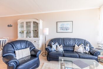 Direkt am Strand erwartet Sie hier ein modernes, im maritimen Stil möbliertes 2-Zimmer-Appartement mit allem Komfort zum Wohlfühlen. Im Wohnraum befinden sich ein gemütlicher Dreisitzer und ein Sessel mit einem Couchtisch sowie ein Esstisch mit vier Stühlen. Dank der gut ausgestatteten Küchenzeile, die sich ebenfalls im Wohnraum befindet, können Sie entscheiden, ob Sie selber kochen oder sich durch die kulinarische Küche Travemündes schlemmen möchten. Im Schlafzimmer stehen ein bequemes Doppelbett (180cm x 200 cm) und ein Kleiderschrank.In der Wohnzimmernische befindet sich eine Sitz-/Schlafcouch (140 cm x 200 cm). Das Duschbad, das Sie vom Flur erreichen, ist in warmen Farben gehalten. Die sehr geschmackvoll eingerichtete Wohneinheit lässt keine Wünsche offen und lädt zu einem wunderschönen Urlaub an der Ostsee ein. Den großen Balkon erreichen Sie von beiden Zimmern. Hier genießen Sie einen fantastischen Blick auf den Strand und die Lübecker Bucht.